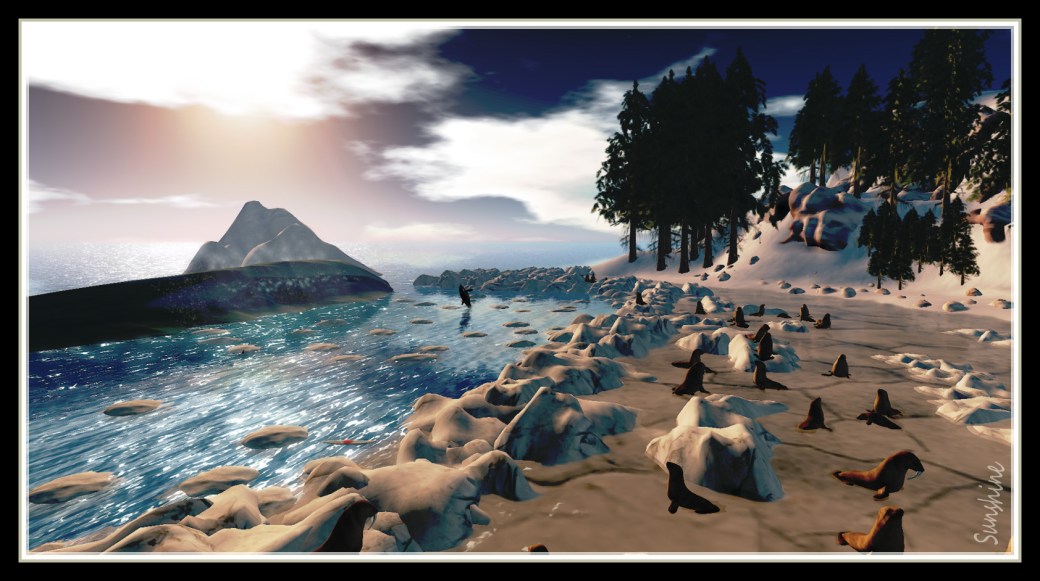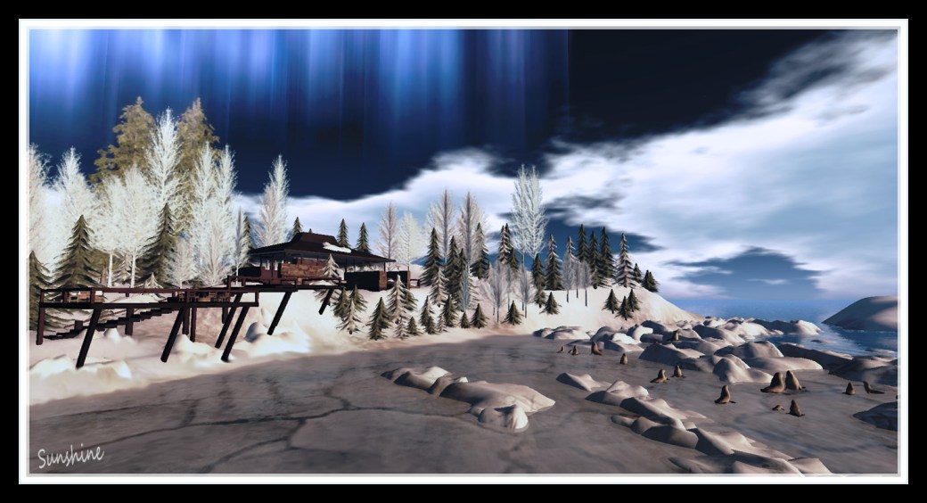 Then…everyone might remember that we had a MAJOR change in October 2010 when we went full arctic surf and winter solstice…and we had ICE and SNOW everywhere! This was such a beautiful change as well…and welcomed for many reasons. The surf sim was placed on Showcase by Torley in January 2011 and visitors came in droves to see the seal colony, the orcas and the narwhals under the Northern Lights. In February 2010, we hosted our third SLSA surf comp…and the surfers had the most unique lag-free (and chilling) experience ever!